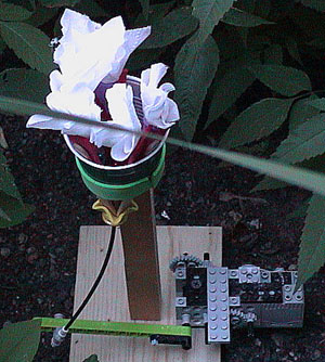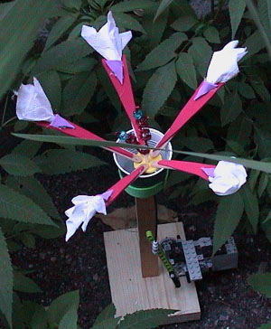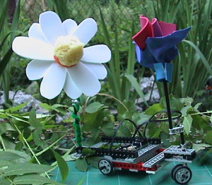 |  | Dancing Flowers: (Click to watch the flower dance) A Fwd-Rev-Rt-Lt Chassis, modified for the micro motors and MIT programmable Cricket, makes the rose turn and the daisy sway. The program loops around a right turn and then a left turn. |